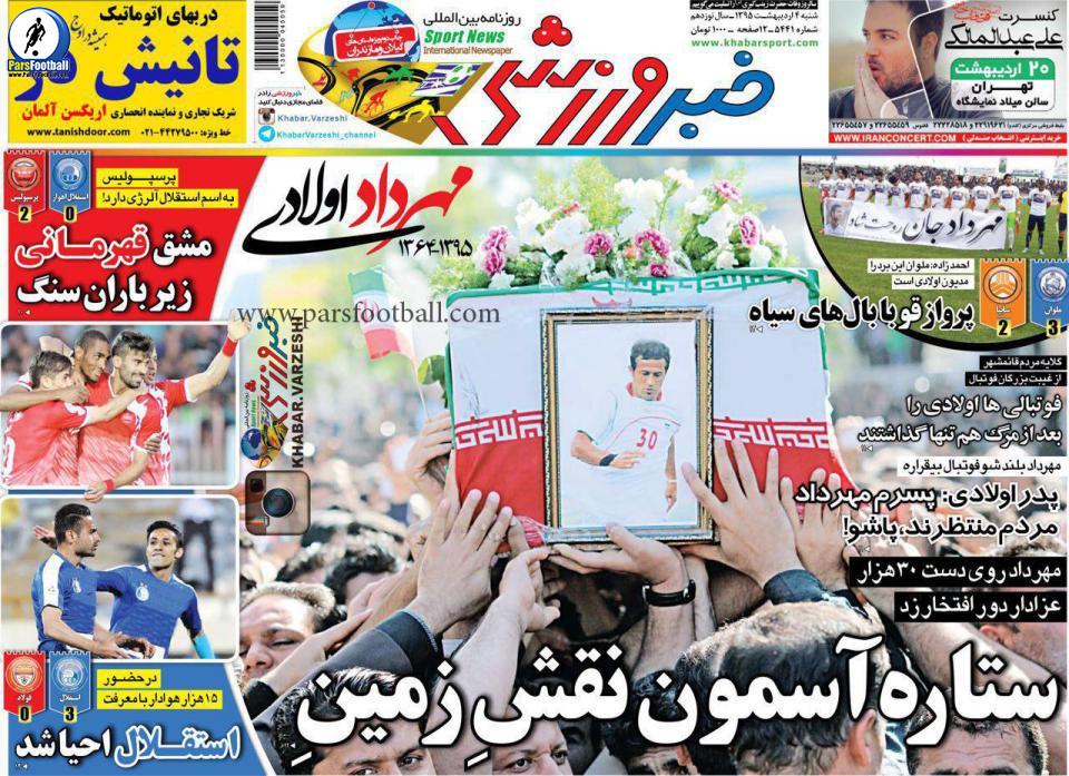 روزنامه خبر ورزشی ۴ اردیبهشت |پدر اولادی:پسرم مهرداد مردم منتظرند،پاشو!