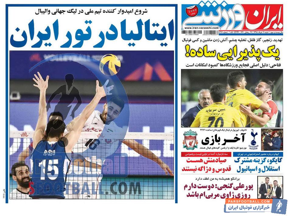 عناوین روزنامه ایران ورزشی شنبه ۱۱ خرداد ماه به شرح زیر است :