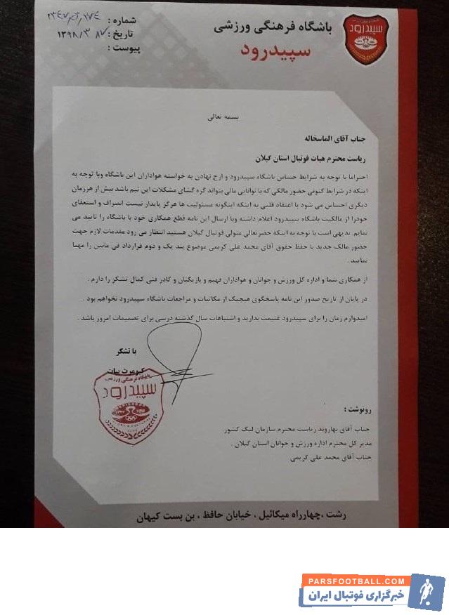 مالک سپیدرود از تیمداری انصراف داد + عکس
