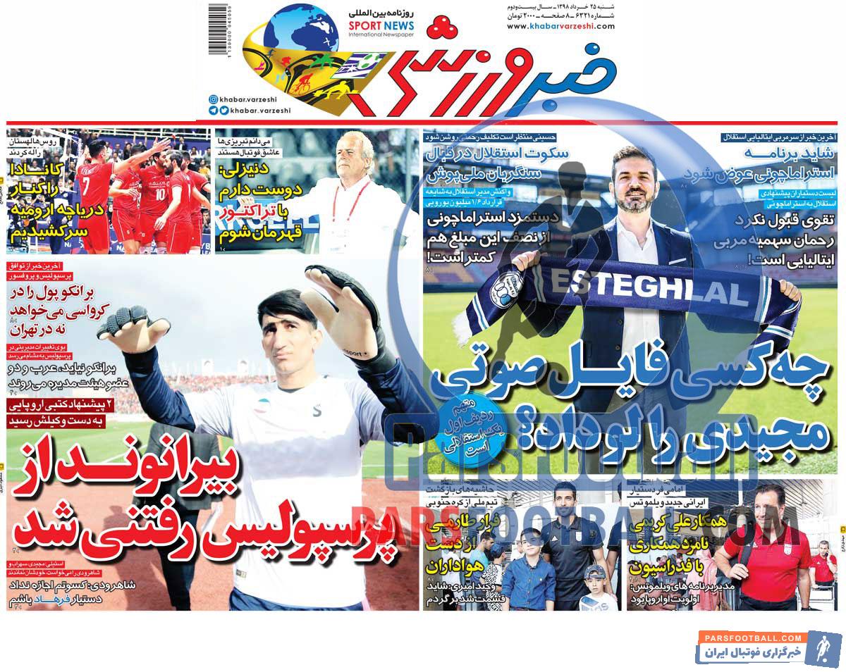 عناوین روزنامه خبر ورزشی شنبه ۲۵ خرداد ماه به شرح زیر است :