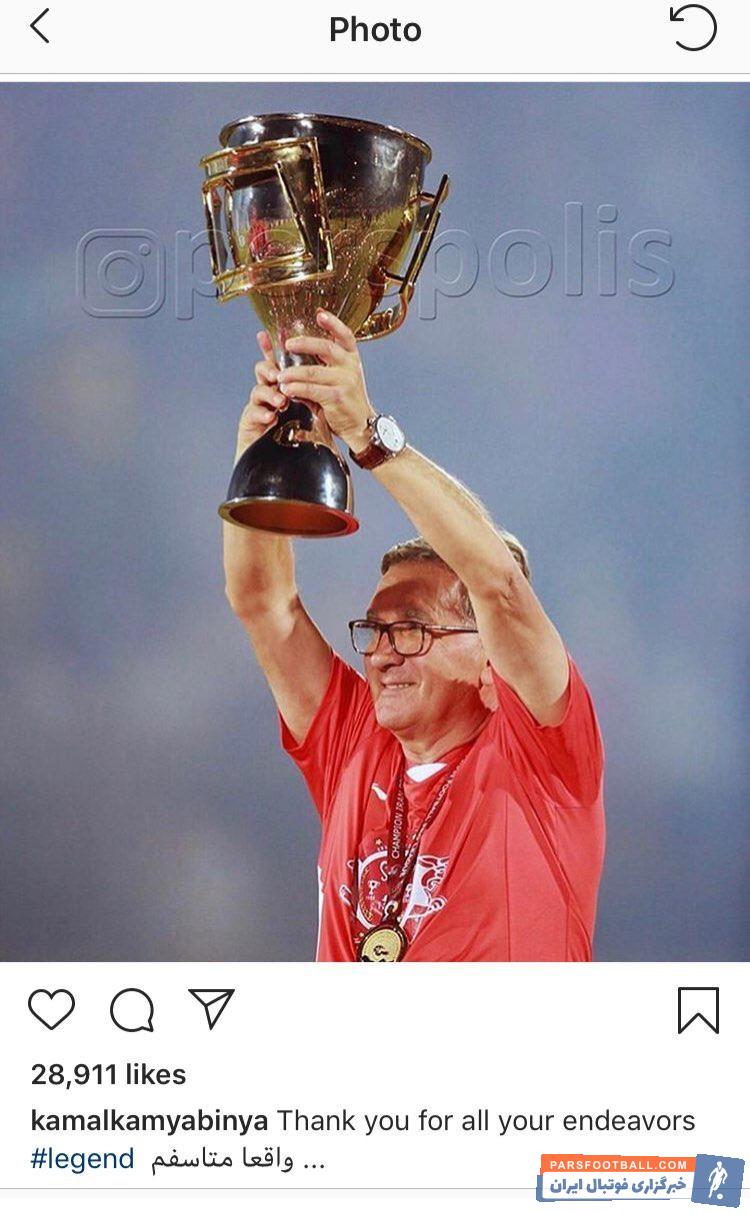 کمال همچنین از هشتگ «اسطوره» برای تمجید از برانکو سود برد و در نهایت به زبان فارسی نوشت: