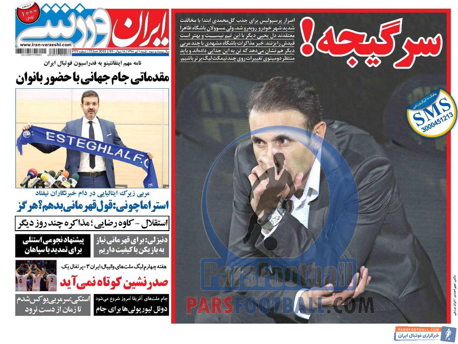 عناوین روزنامه ایران ورزشی  شنبه ۱ تیر ماه به شرح زیر است :