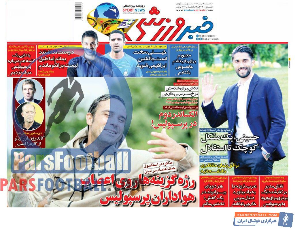 عناوین روزنامه خبر ورزشی سه شنبه ۴ تیر ماه به شرح زیر است :