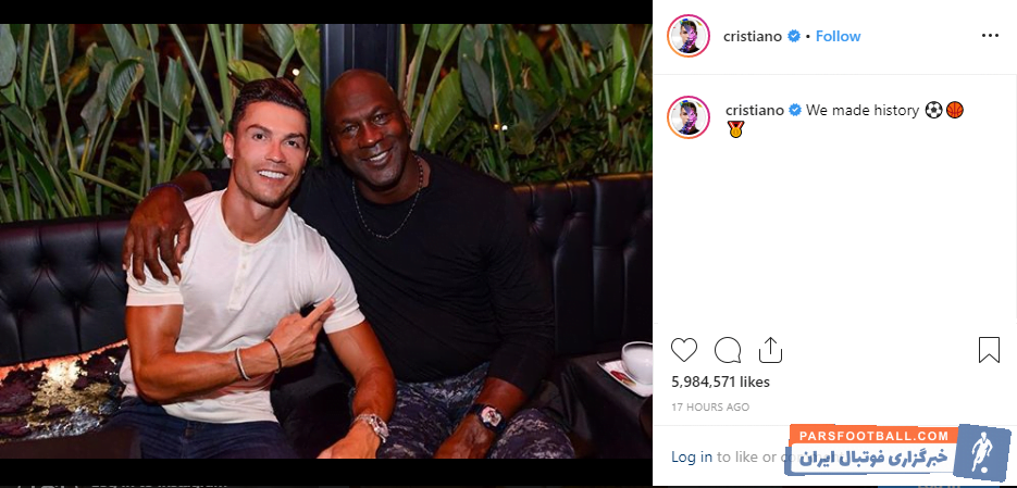 رونالدو ستاره یوونتوس بعد از این ملاقات با انتشار تصویری از خود در کنار مایکل جوردن در صفحه رسمی خود نوشت: