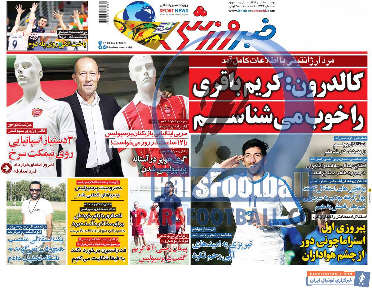 مرور عناوین مهم روزنامه خبر ورزشی دوشنبه 10 تیر 98