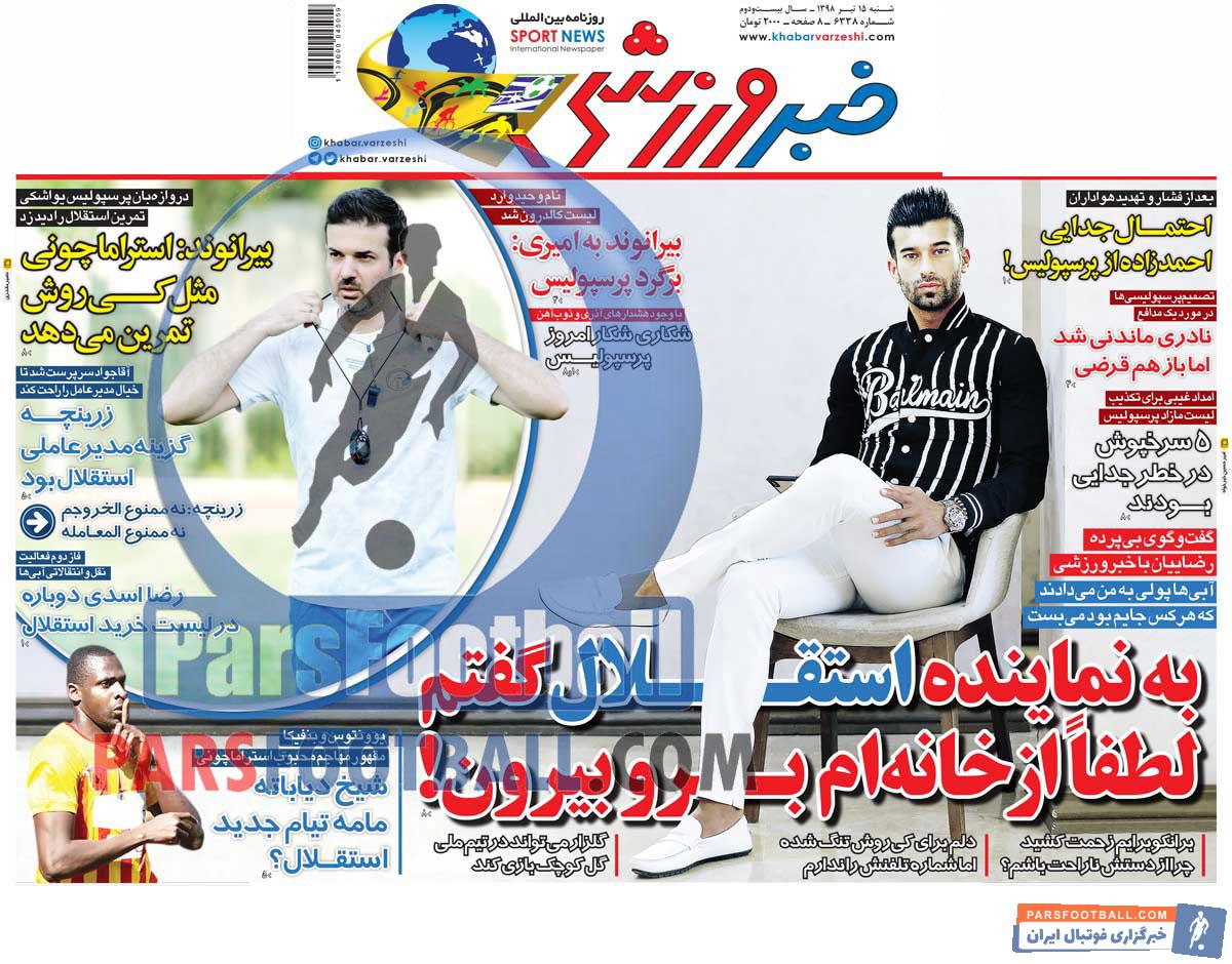 عناوین روزنامه خبر ورزشی شنبه ۱۵ تیر ماه به شرح زیر است :