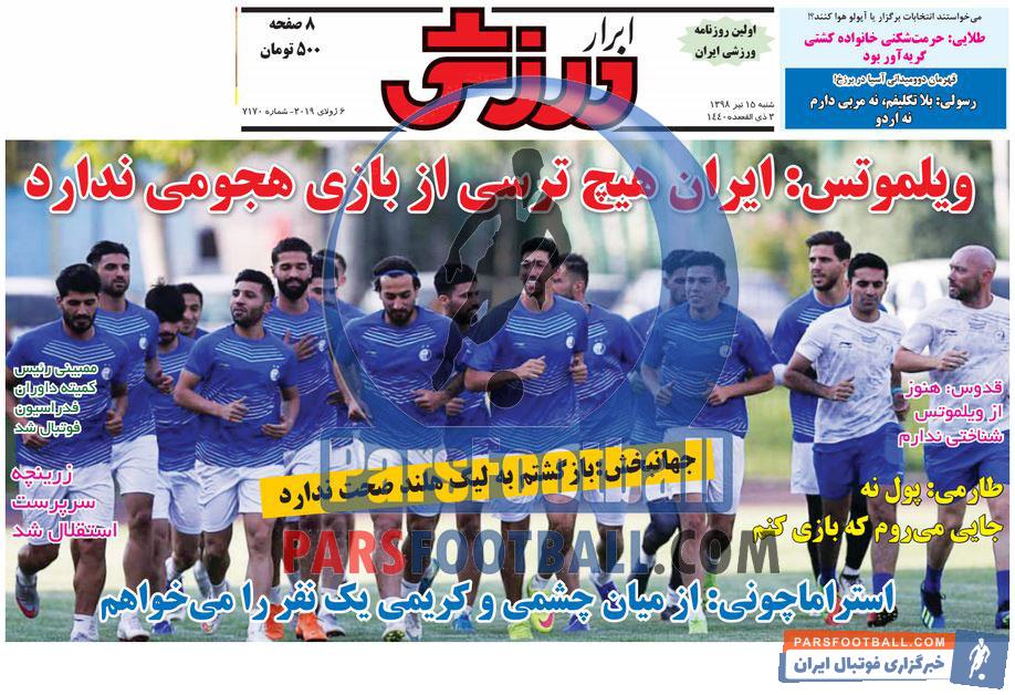 عناوین روزنامه ابرار ورزشی شنبه ۱۵ تیر ماه به شرح زیر است :