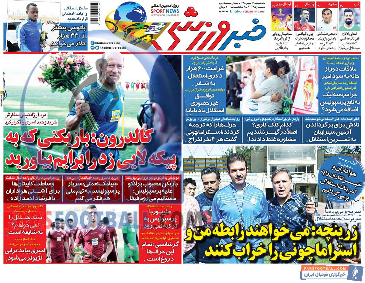عناوین روزنامه خبر ورزشی یکشنبه ۱۶ تیر ماه به شرح زیر است :
