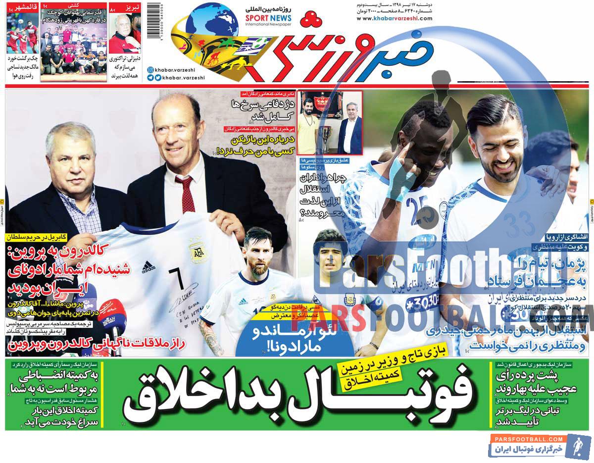 عناوین روزنامه خبر ورزشی دوشنبه ۱۷ تیر ماه به شرح زیر است :