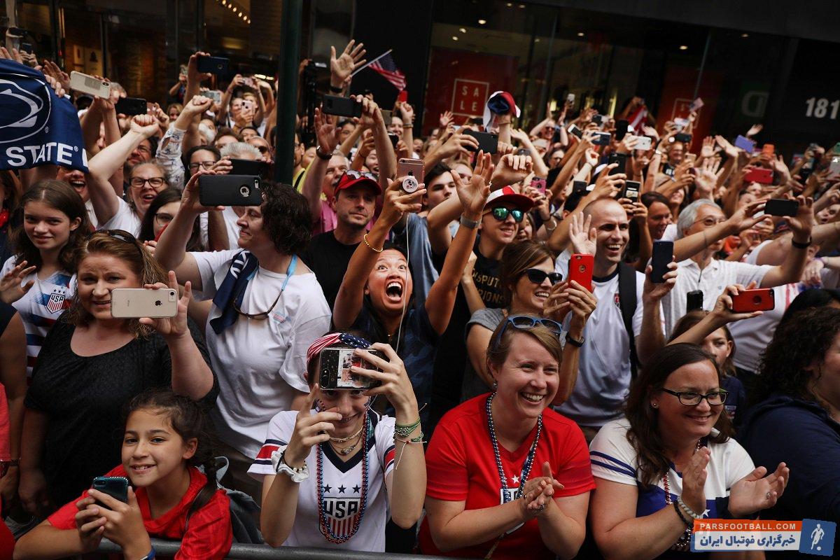 جشن قهرمانی تیم ملی زنان آمریکا در خیابانهای نیویورک پس از فتح جام جهانی