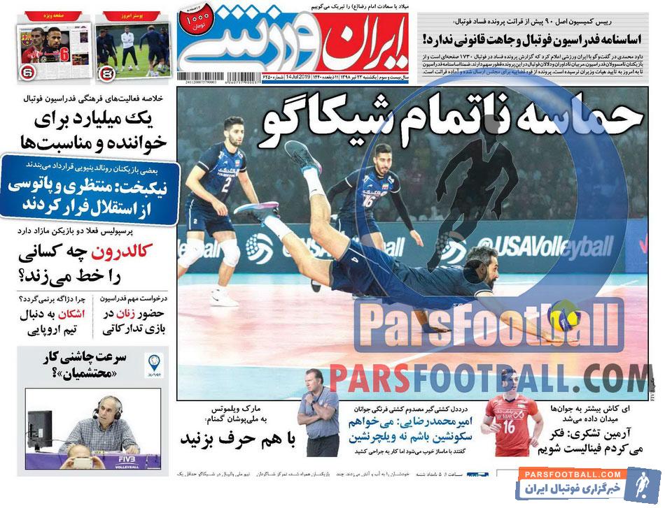 عناوین روزنامه ایران ورزشی یکشنبه ۲۳ تیر ماه به شرح زیر است :