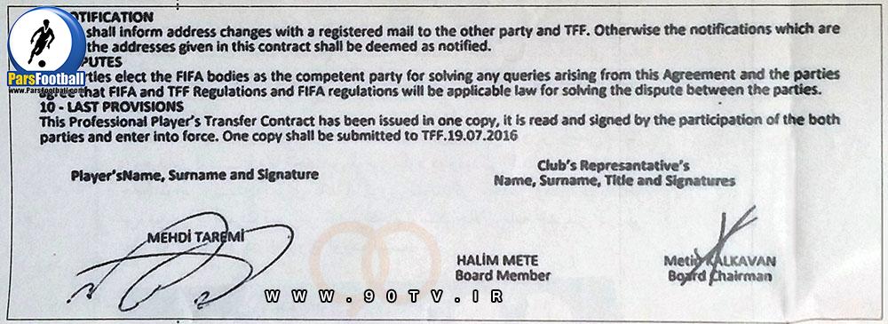 رسانه ها موفق شده اند به بندهای جنجالی قرارداد مهدی طارمی دسترسی پیدا کنند که در آن تصریح شده مرجع حل اختلاف این بازیکن و باشگاه نه فدراسیون فوتبال ترکیه بلکه فدراسیون جهانی فوتبال، فیفا است. همچنین یک نسخه از این قرارداد در فدراسیون فوتبال ترکیه ثبت شده و این قرارداد از حالت داخلی خارج شده است.