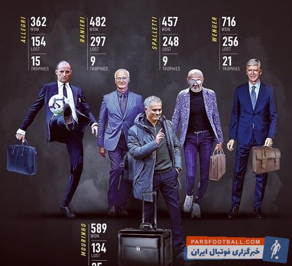 مورینیو: ۵۸۹ پیروزی، ۱۳۴ باخت و ۲۵ جام