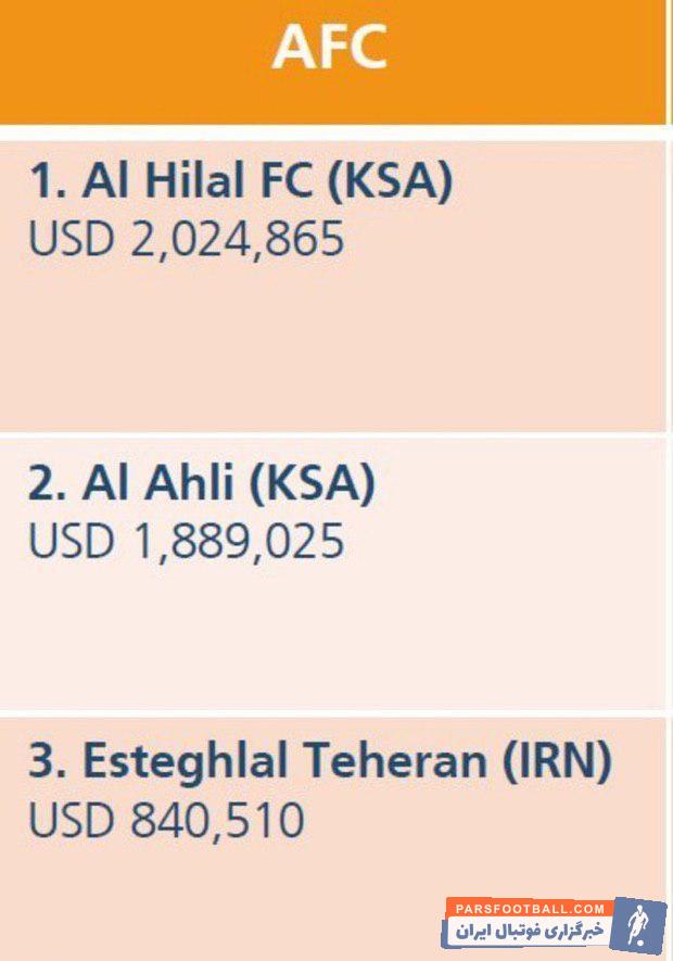 استقلال سومین باشگاه پردرآمد آسیا در فیفا شد