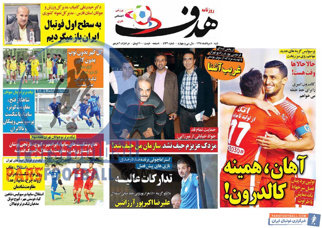 عناوین روزنامه هدف شنبه ۵ مرداد ماه به شرح زیر است :
