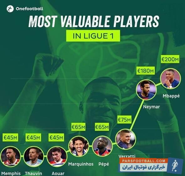 فهرستی از ارزشمندترین بازیکنان حاضر در رقابتهای لیگ فوتبال باشگاهی فرانسه به تصویر کشیده شده است.