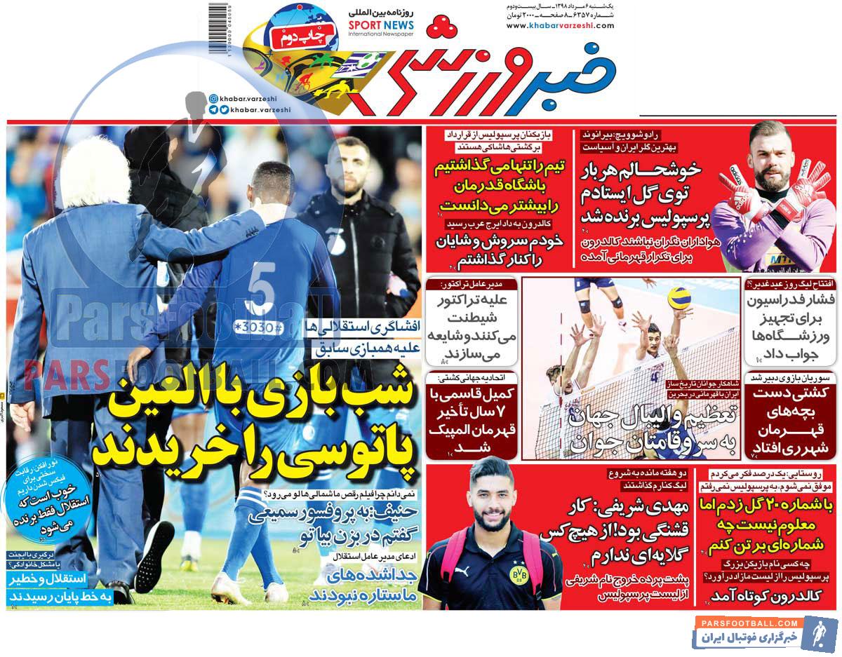 عناوین روزنامه خبر ورزشی یکشنبه ۶ مرداد ماه به شرح زیر است :