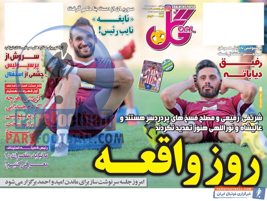 عناوین روزنامه گل یکشنبه ۶ مرداد ماه به شرح زیر است :