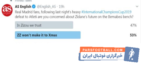 در نظرسنجی آ.اس، ۵۳ درصد هواداران مدعی شدند زیدان قبل از کریسمس اخراج خواهد شد و این بار نمی تواند منجی تیمش باشد. اتفاقی که در سالهای اخیر کم رخ نداده و تجربه نشان داده هم فلورنتینو پرز و هم حاضران در برنابئو خیلی تحمل شکست های متوالی را ندارند.