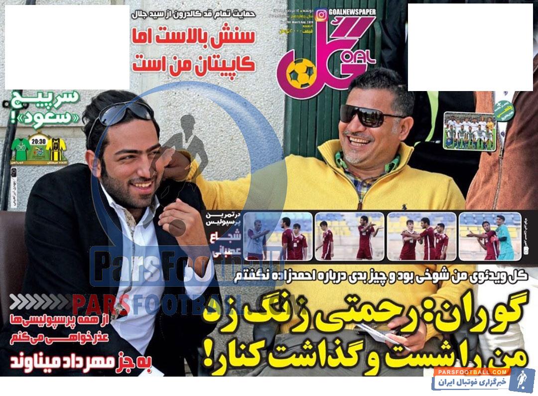 عناوین روزنامه گل دوشنبه ۱۴ مرداد ماه به شرح زیر است :