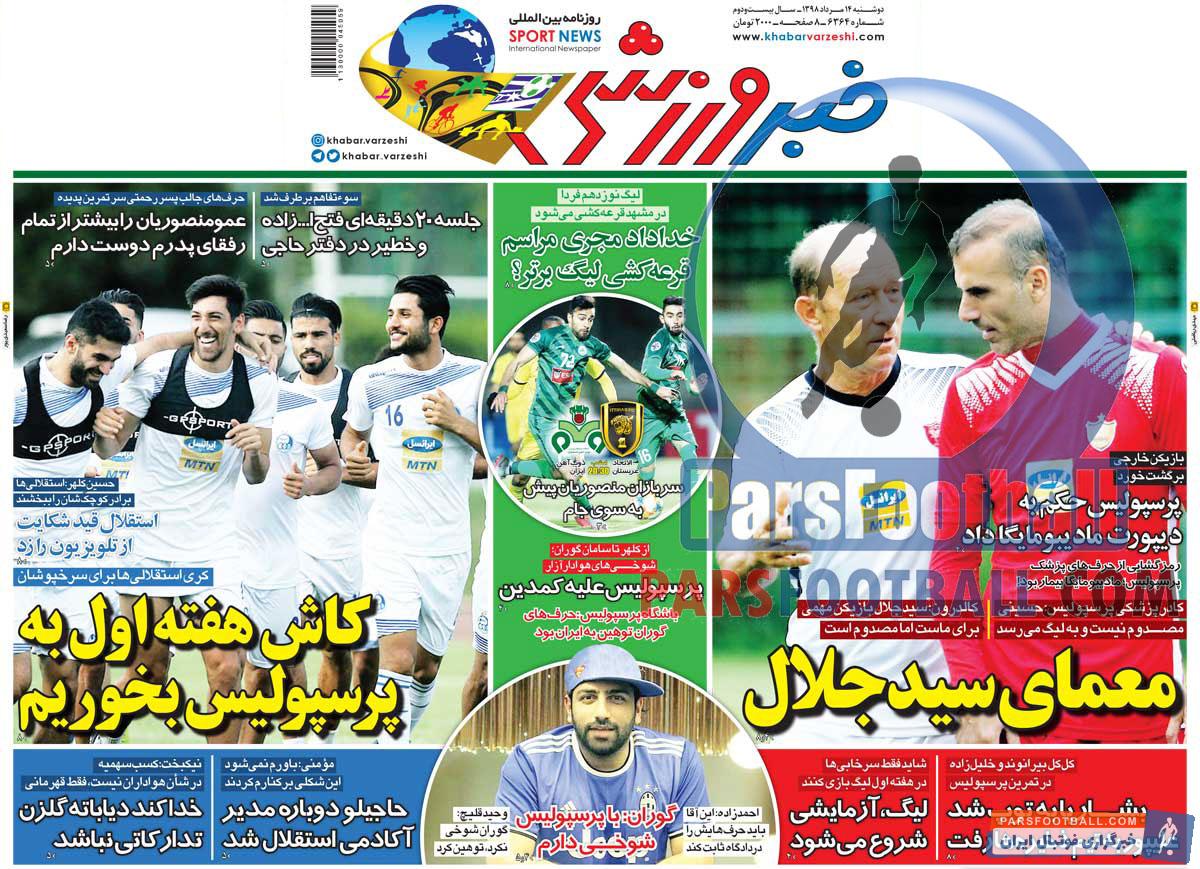 عناوین روزنامه خبر ورزشی دوشنبه ۱۴ مرداد ماه به شرح زیر است :