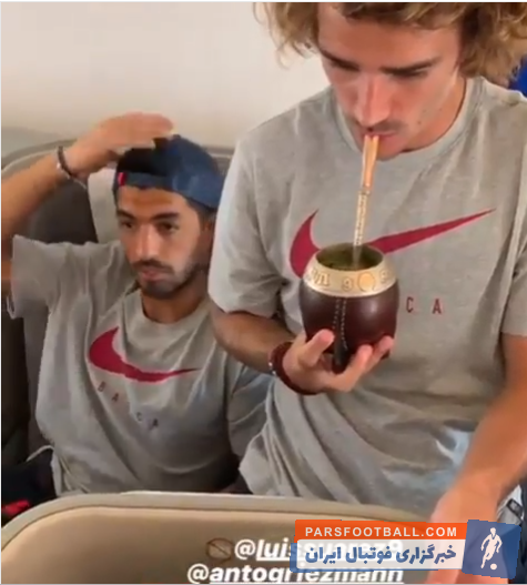 بر همین اساس جای تعجب نداشت که در بدو انتقال به بارسلونا، لوییس سوارز تبدیل به صمیمی ترین دوست آنتوان گریزمان در رختکن شود. حالا تصاویری از هواپیمای حامل بازیکنان بارسا منتشر شده که گریزمان در کنار سوارز نشسته و ستاره اروگوئه ای “چای ماته”، چای معروف آمریکای لاتین را به آنتوان گریزمان تعارف می کند که به نظر می رسد طعم این چای با ذائقه ستاره فرانسوی سازگار بوده است.