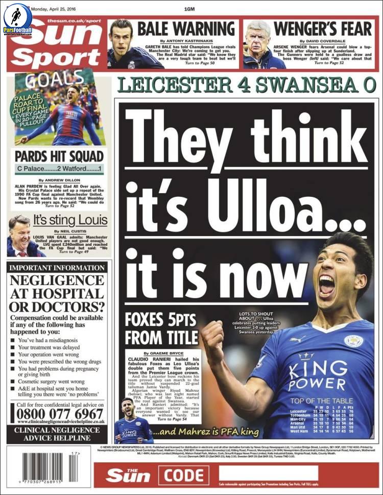 روزنامه سان اسپورت بریتانیا را در ۲۵ آوریل مرور خواهیم کرد.