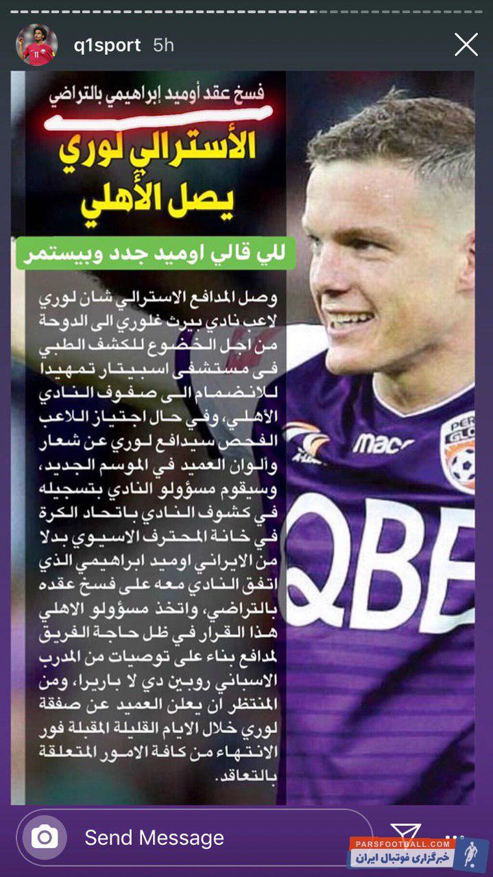 روز گذشته ۲ روزنامه قطری خبر از این دادند که امید ابراهیمی بازیکن ملی پوش ایرانی به دلیل پربودن سهمیه این تیم در مسیر جدایی قرار دارد تا الاهلی بتواند با شین لوری مدافع پرث گلوری قرارداد خود را منعقد کند.