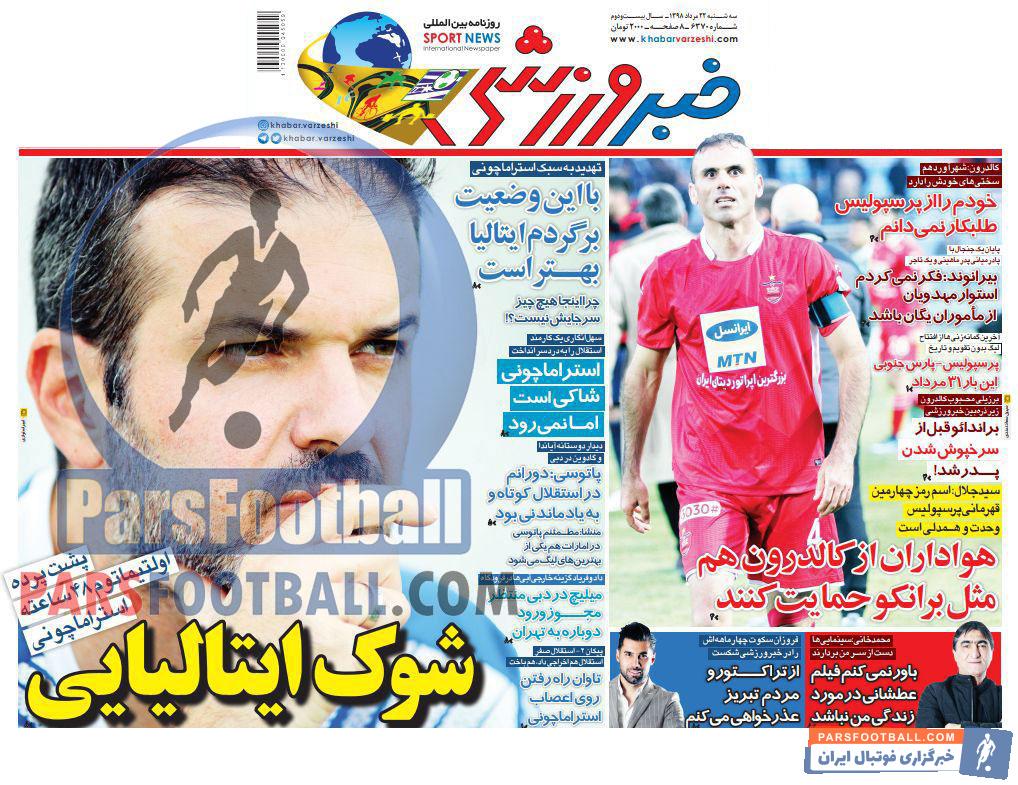عناوین روزنامه خبر ورزشی سه شنبه ۲۲ مرداد ماه به شرح زیر است :