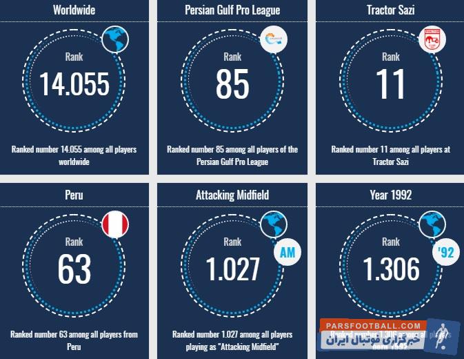 _ بر اساس اطلاعات وب سایت ترانسفر مارکت، ارزش این بازیکن در سایت ترنسفرمارکت ۴۰۰ هزار دلار تخمین زده شده است. بر اساس این آمار، در تصویر زیر می توانید نسبت به رقم قرارداد این بازیکن، جایگاهش را به ترتیب از راست به چپ در جهان، لیگ برتر، تیم تراکتور، کشور پرو، هافبک های تهاجمی و متولدین سال ۱۹۹۲ مشاهده کنید. برای مثال، ویلیان جایگاه یازدهم را از نظر رقم قرارداد در تیم تراکتورسازی دارد.