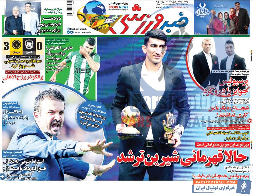 عناوین روزنامه خبر ورزشی یکشنبه ۳ شهریور ماه به شرح زیر است :