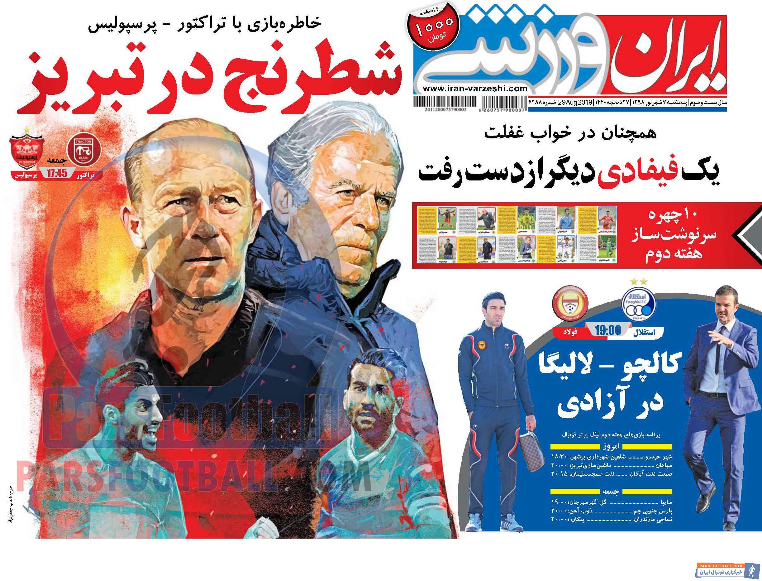 عناوین روزنامه ایران ورزشی پنجشنبه ۷ شهریور ماه به شرح زیر است :