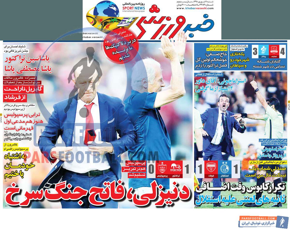 عناوین روزنامه خبر ورزشی شنبه ۹ شهریور ماه به شرح زیر است :