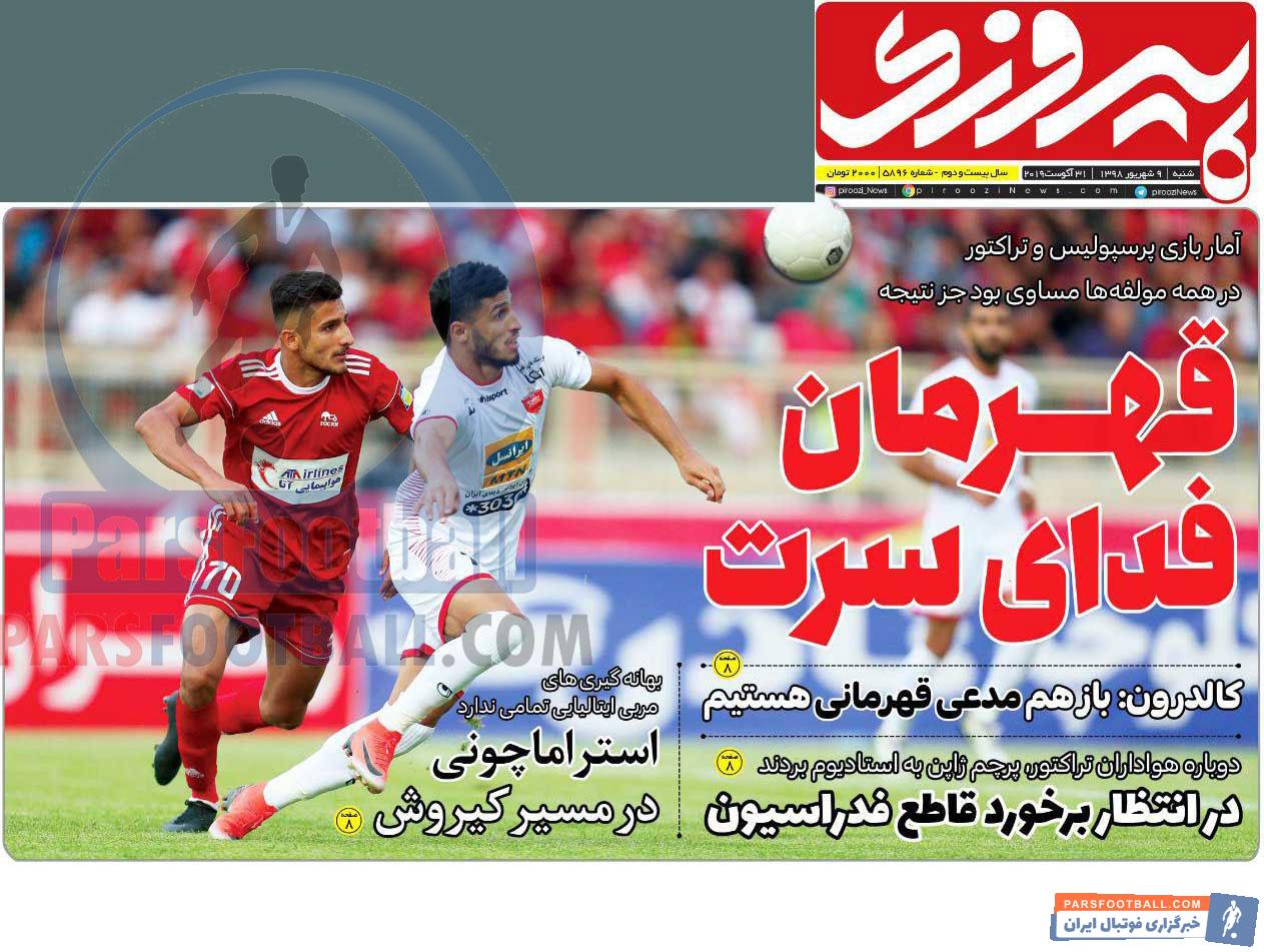 مرور عناوین مهم روزنامه پیروزی شنبه 9 شهریور