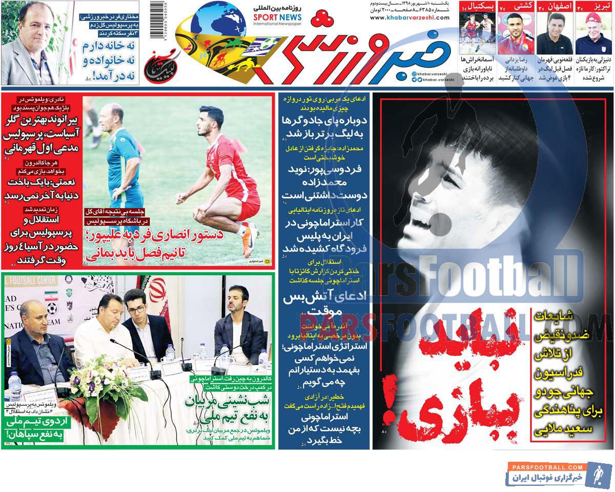 عناوین روزنامه خبر ورزشی یکشنبه ۱۰ شهریور ماه به شرح زیر است :