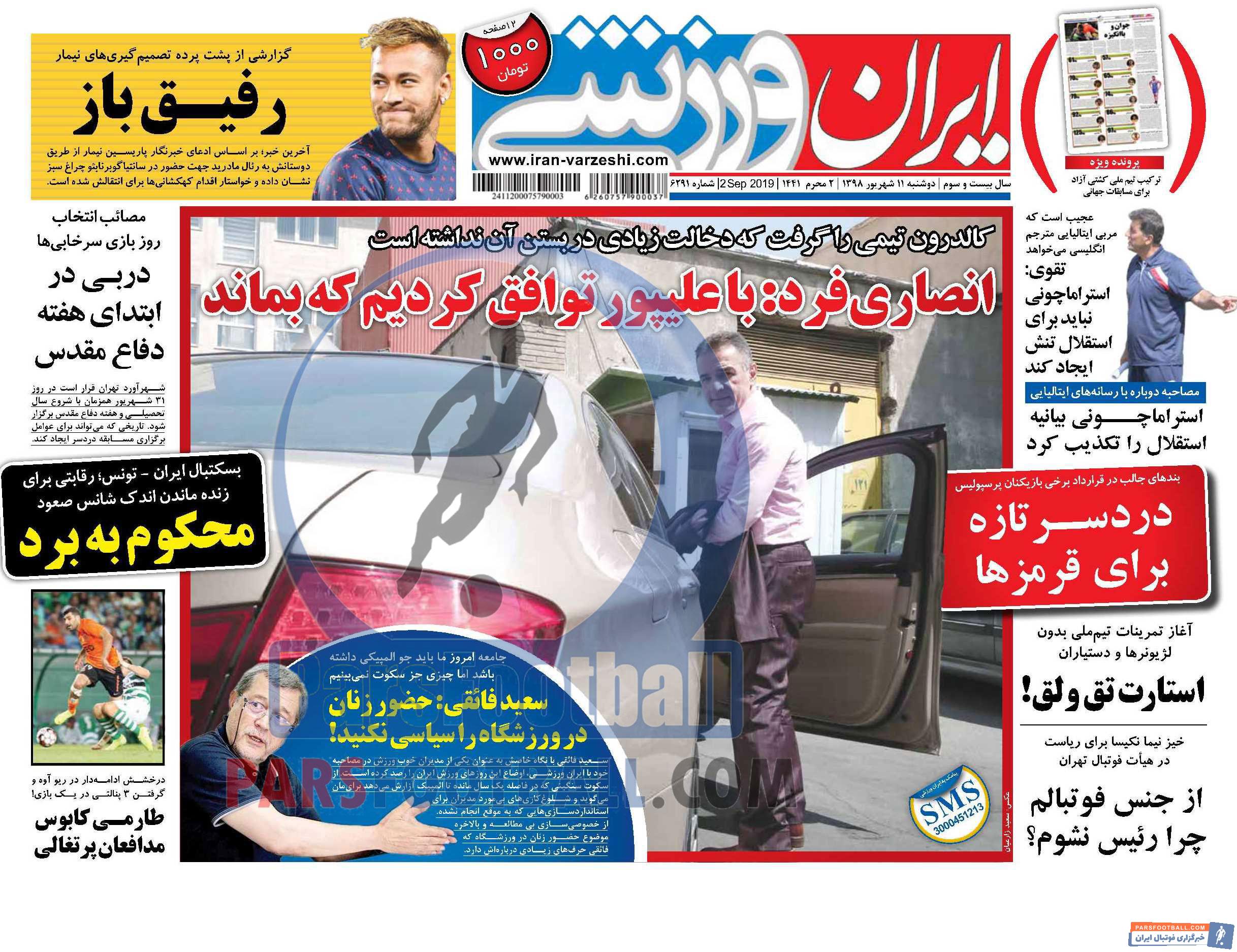 عناوین روزنامه ایران ورزشی دوشنبه ۱۱ شهریور ماه به شرح زیر است :