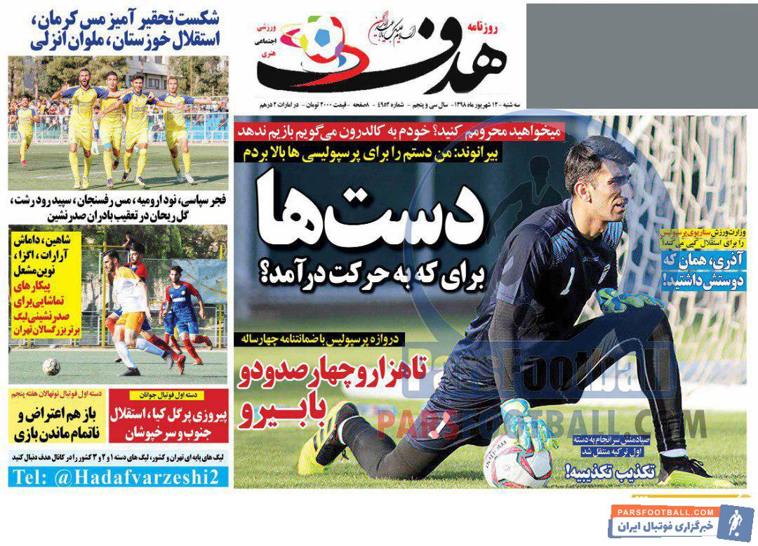 مرور عناوین مهم روزنامه هدف سه شنبه 12 شهریور