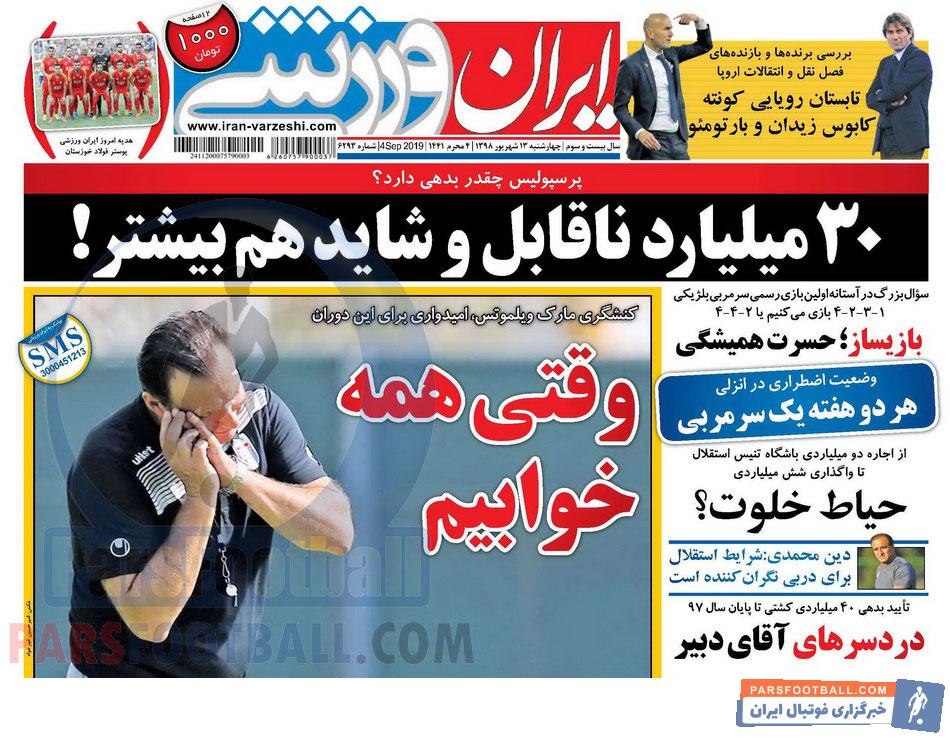 عناوین روزنامه ایران ورزشی چهارشنبه ۱۳ شهریور ماه به شرح زیر است :