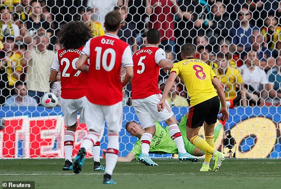 در اواخر بازی نیز داوید لوییز که از زمان انتقال به آرسنال نمایش اسف باری داشته، یک پنالتی تقدیم واتفورد کرد و پریرا موفق شد گل تساوی را وارد دروازه برند لنو کند.