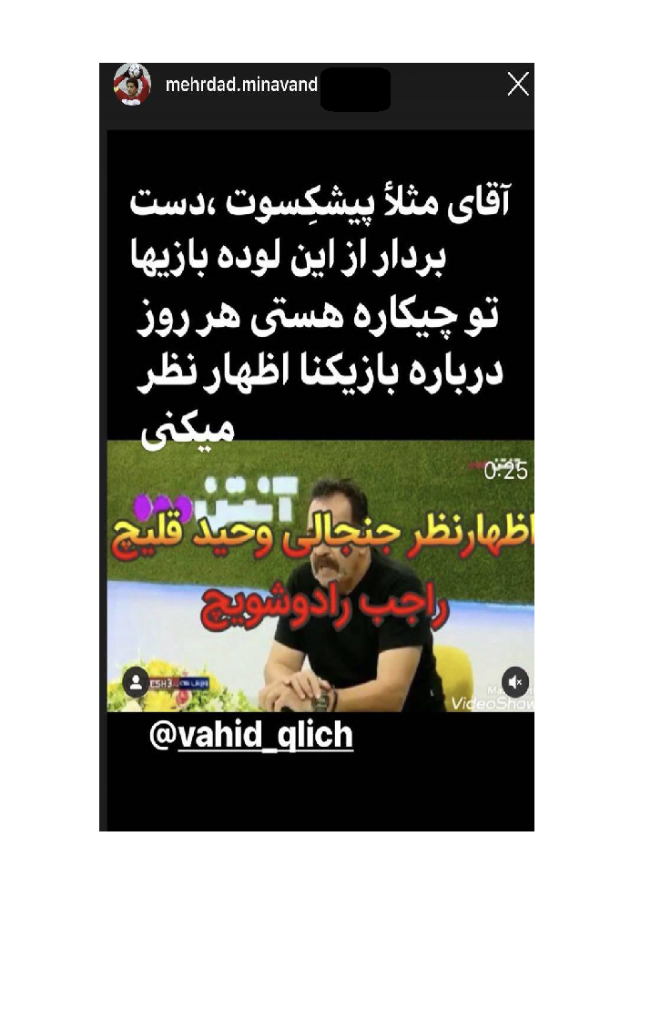 وحید قلیچ : رادوشویچ اصلا گلر نیست ! میناوند : تو چه کاره هستی که درباره بازیکن ها اظهار نظر می کنی !