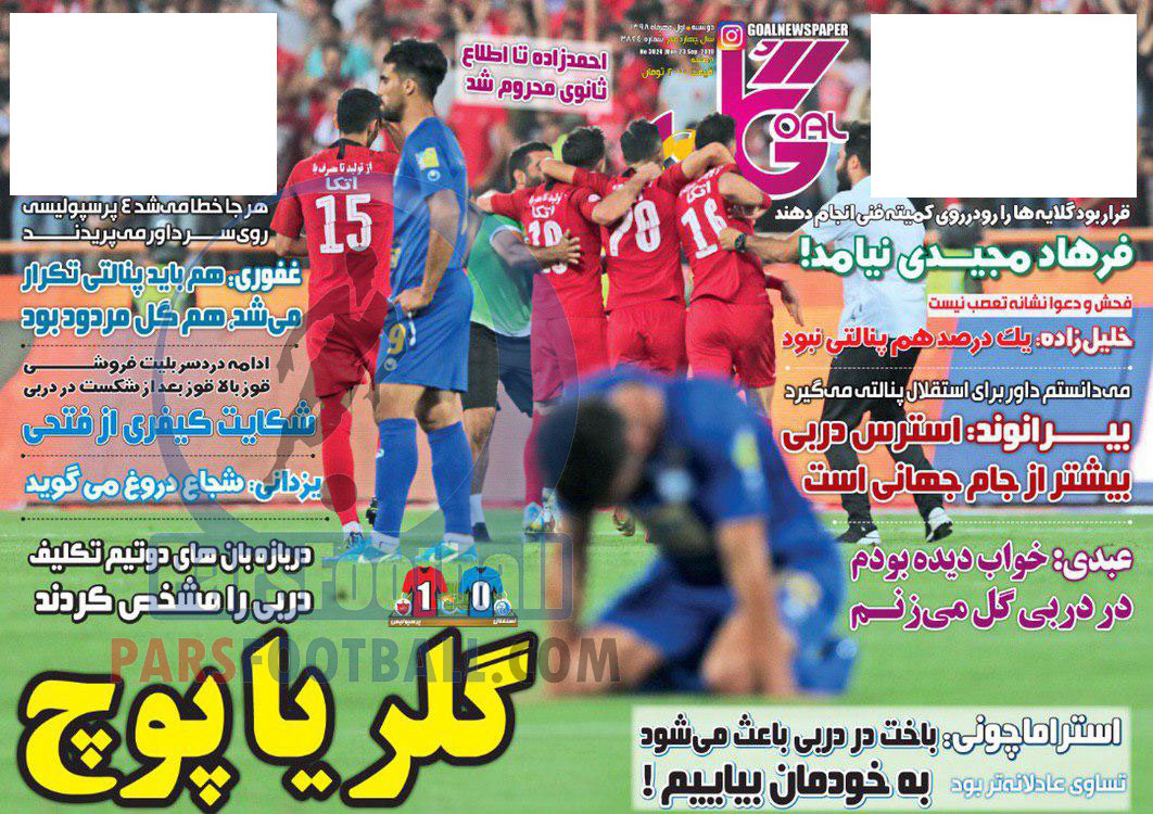 روزنامه ؛ مرور عناوین مهم روزنامه گل یکشنبه 24 شهریور ؛ خبرگزاری پارس فوتبال