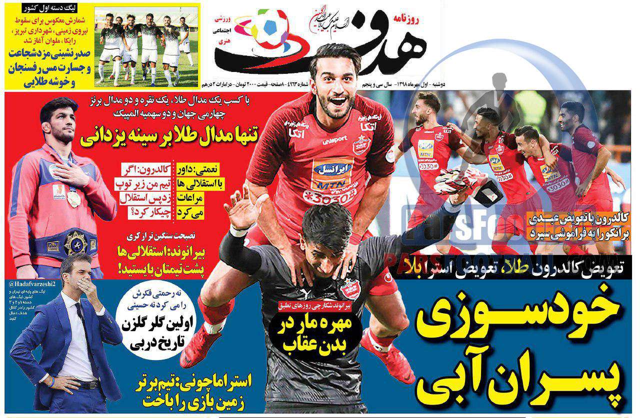 عناوین روزنامه هدف دوشنبه ۱ مهر ماه به شرح زیر است :