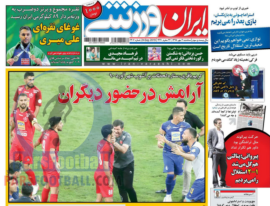 عناوین روزنامه ایران ورزشی سه شنبه ۲ مهر ماه به شرح زیر است :