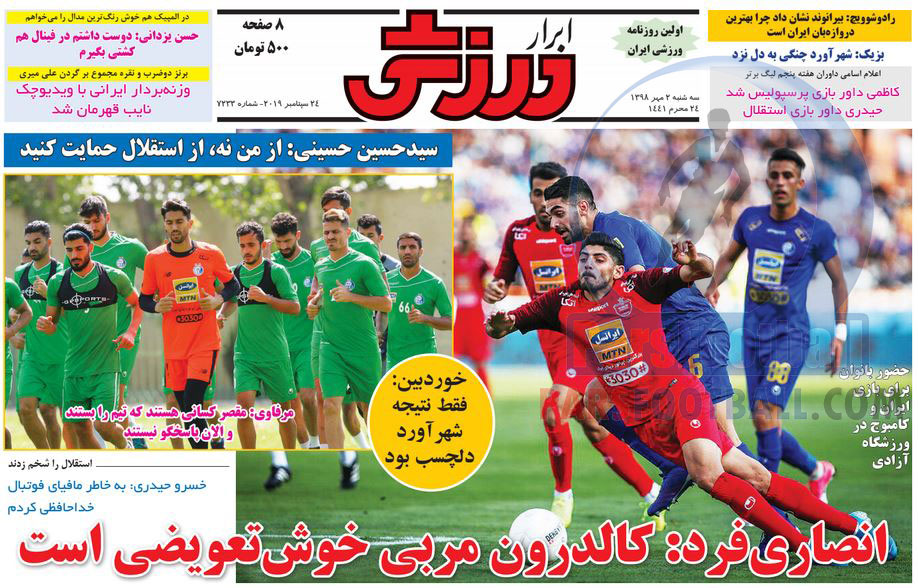 عناوین روزنامه ابرار ورزشی سه شنبه ۲ مهر ماه به شرح زیر است :