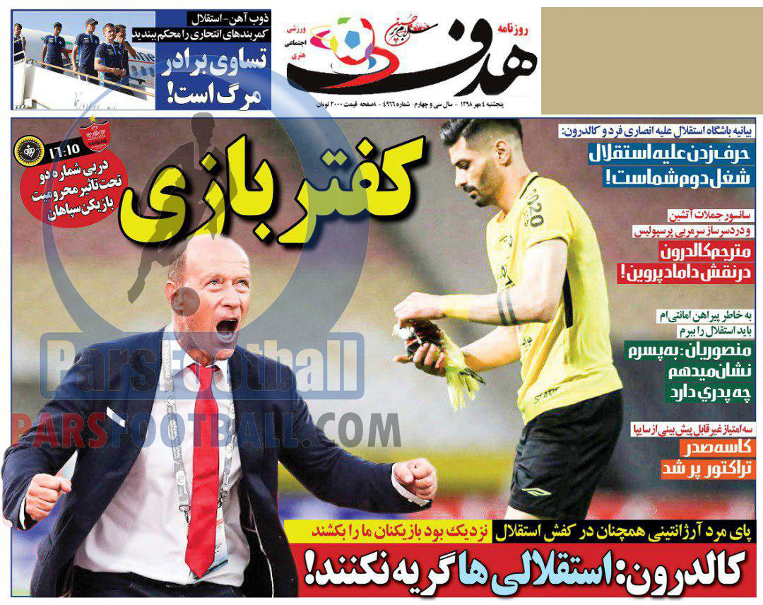 مرور عناوین مهم روزنامه هدف پنجشنبه 4 مهر