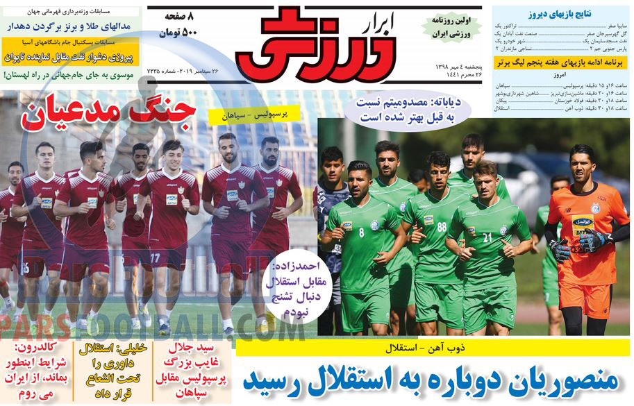 عناوین روزنامه ابرار ورزشی پنجشنبه ۴ مهر ماه به شرح زیر است :