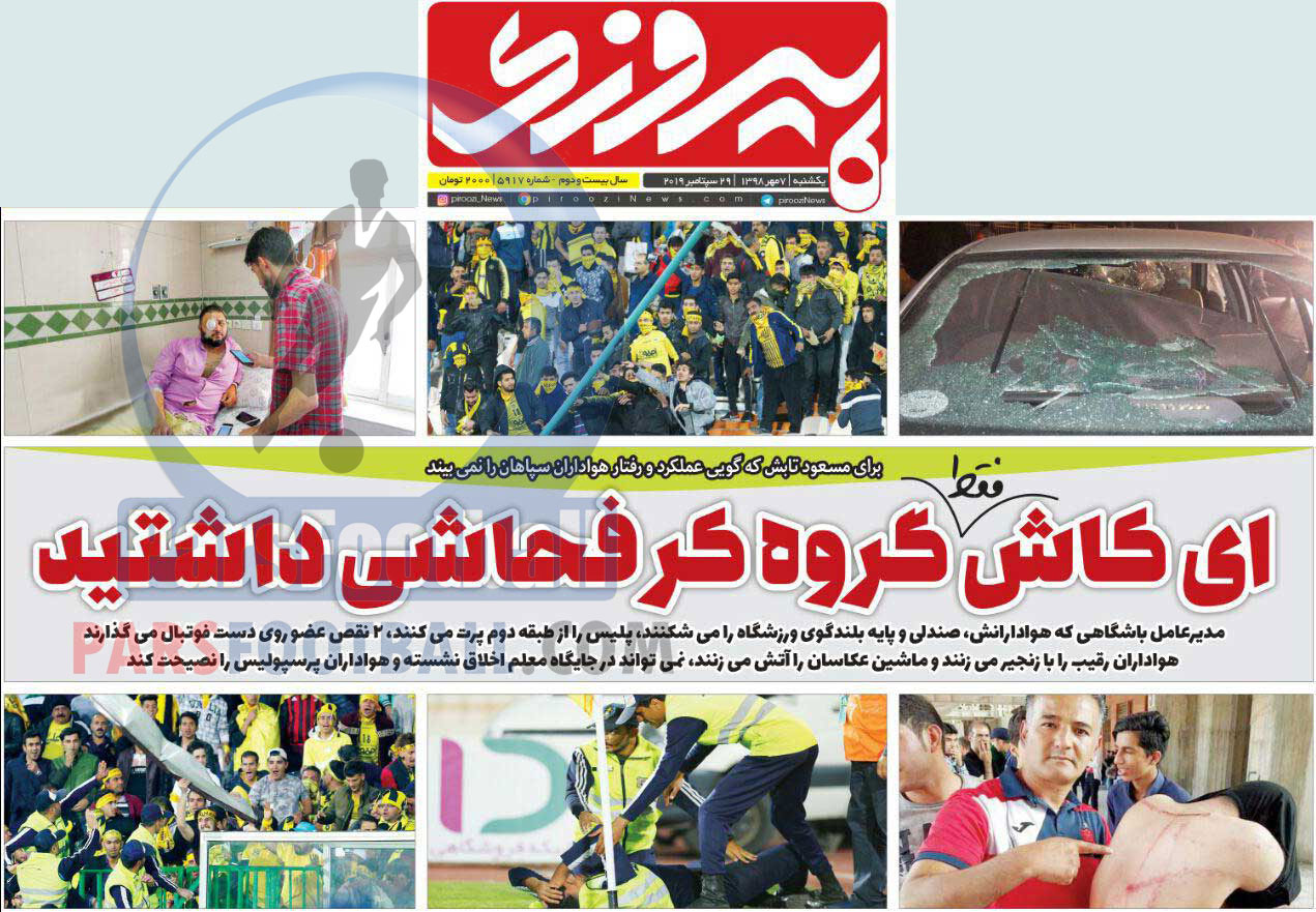 گیشه اخبار داخلی پارس فوتبال همه روزه به بررسی نشریات ورزشی می پردازد. به بررسی روزنامه پیروزی می پردازیم.