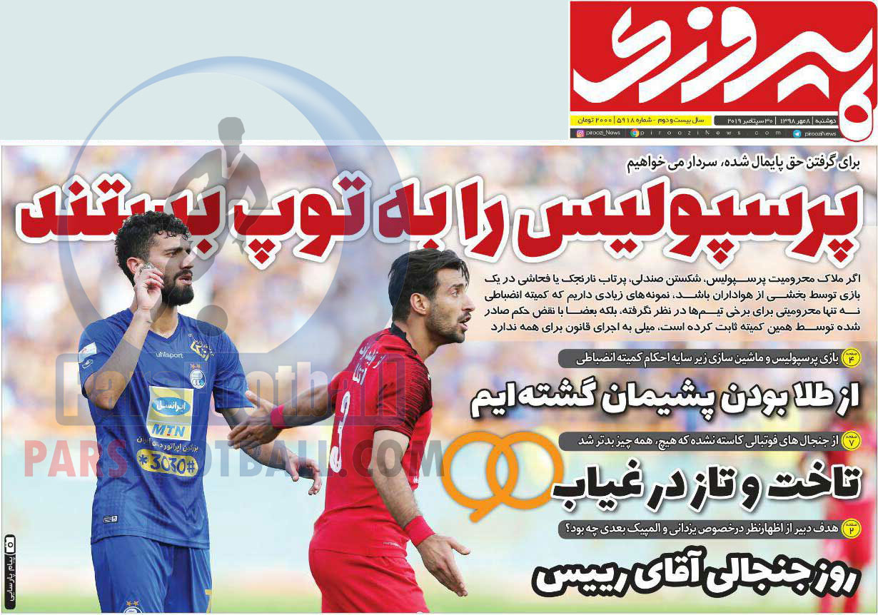 گیشه اخبار داخلی پارس فوتبال همه روزه به بررسی نشریات ورزشی می پردازد. به بررسی روزنامه پیروزی می پردازیم.
