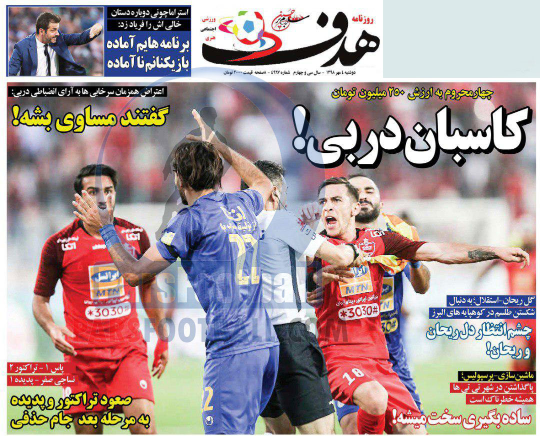 مرور عناوین مهم روزنامه هدف ورزشی یکشنبه 24 شهریور