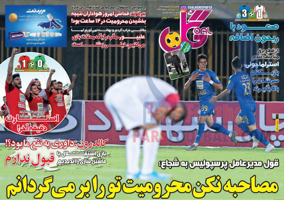 عناوین روزنامه گل سه شنبه ۹ مهر ماه به شرح زیر است :
